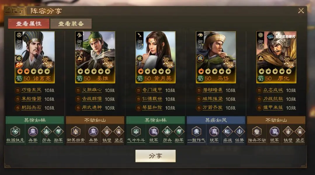 由于没法转阵营,这赛季的蜀骑大部分都是带的庞统,这队属于就算打输也能给对面打出战损,不容易白给的队伍。