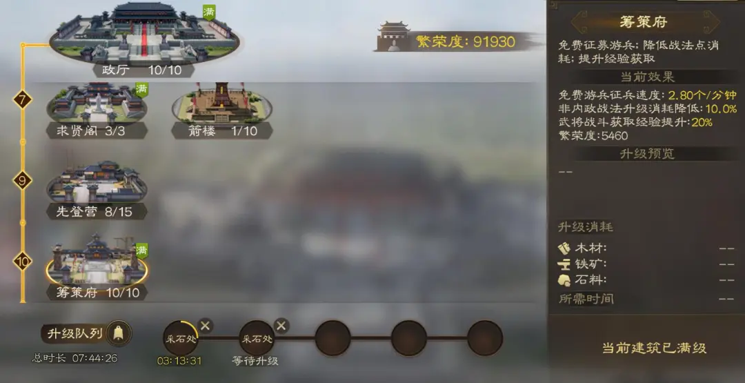 (注:出四队的意思是出四队主力,其他剩余的位置随便组些拆迁或者铺路队,靠筹策府来免费征兵,这个做法是完全可以而且比较推荐的。日常活动里很多地方都要用到多个队伍,比如打城铺路,拆迁,剿匪等,这些都是不需要用主力就能完成的)
