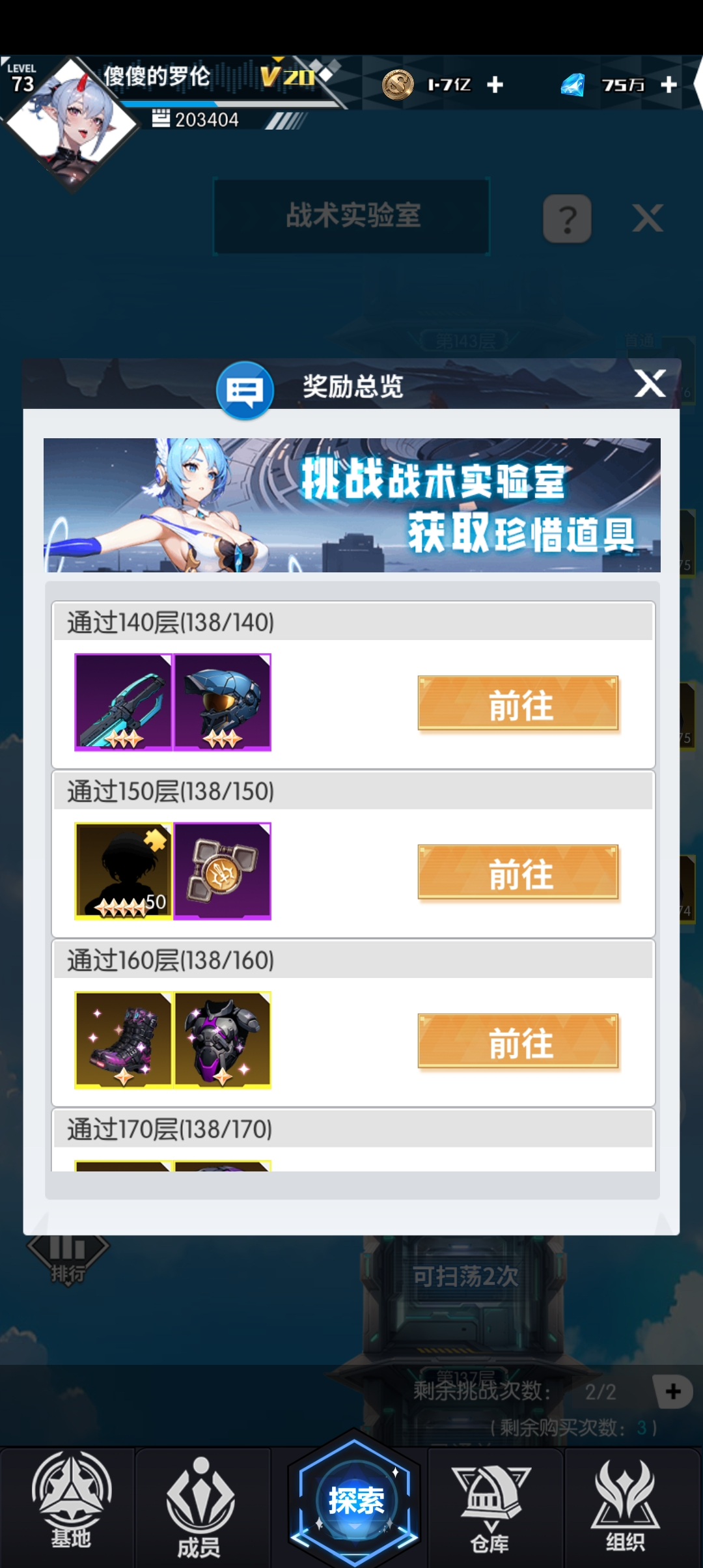 系统介绍:首通每层实验室均可获得元石、金币及英雄精英,通过达标层数可获得额外达标奖励。