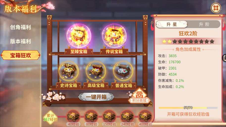 2、宝箱狂欢,超高属性超值宝箱奖励等你来拿!