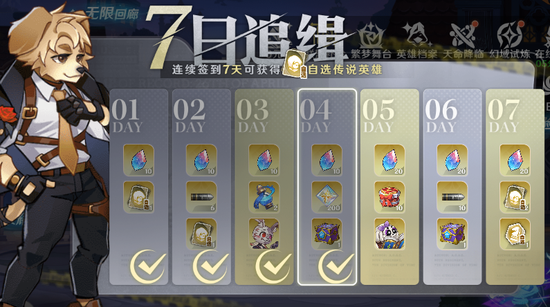 4、登录七天领取海量道具礼包、英雄,传说英雄自选,英雄阿丝/阿蛛,齐丽雅,登录七天还有传说符文