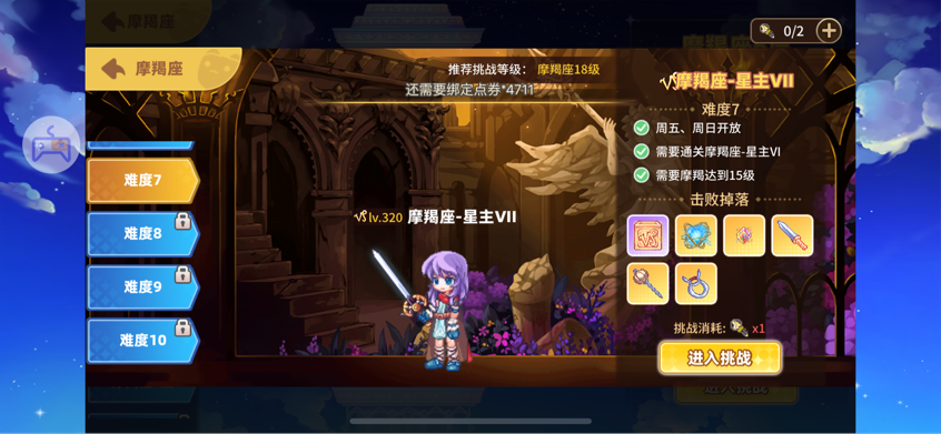 挑战难度越高,获得的星方和星象秘语也就越多,星方用来升级星座等级,星象秘语用来点化星座属性。