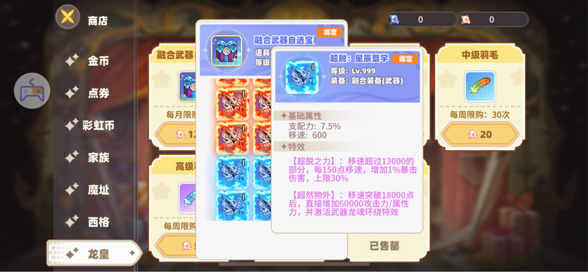 建议大家把每个星座都先升到15级再进行点化,然后激活星图属性,后续可以根据自身需求来着重提升某个星图,这边建议提升风象星图,可以增加移速,炼狱龙皇殿会产出融合宝箱,可以给用来给武器防具融合增加属性,超脱套装可以用来增加移速,达到18000移速后还会有武器龙魂环绕特效哦。